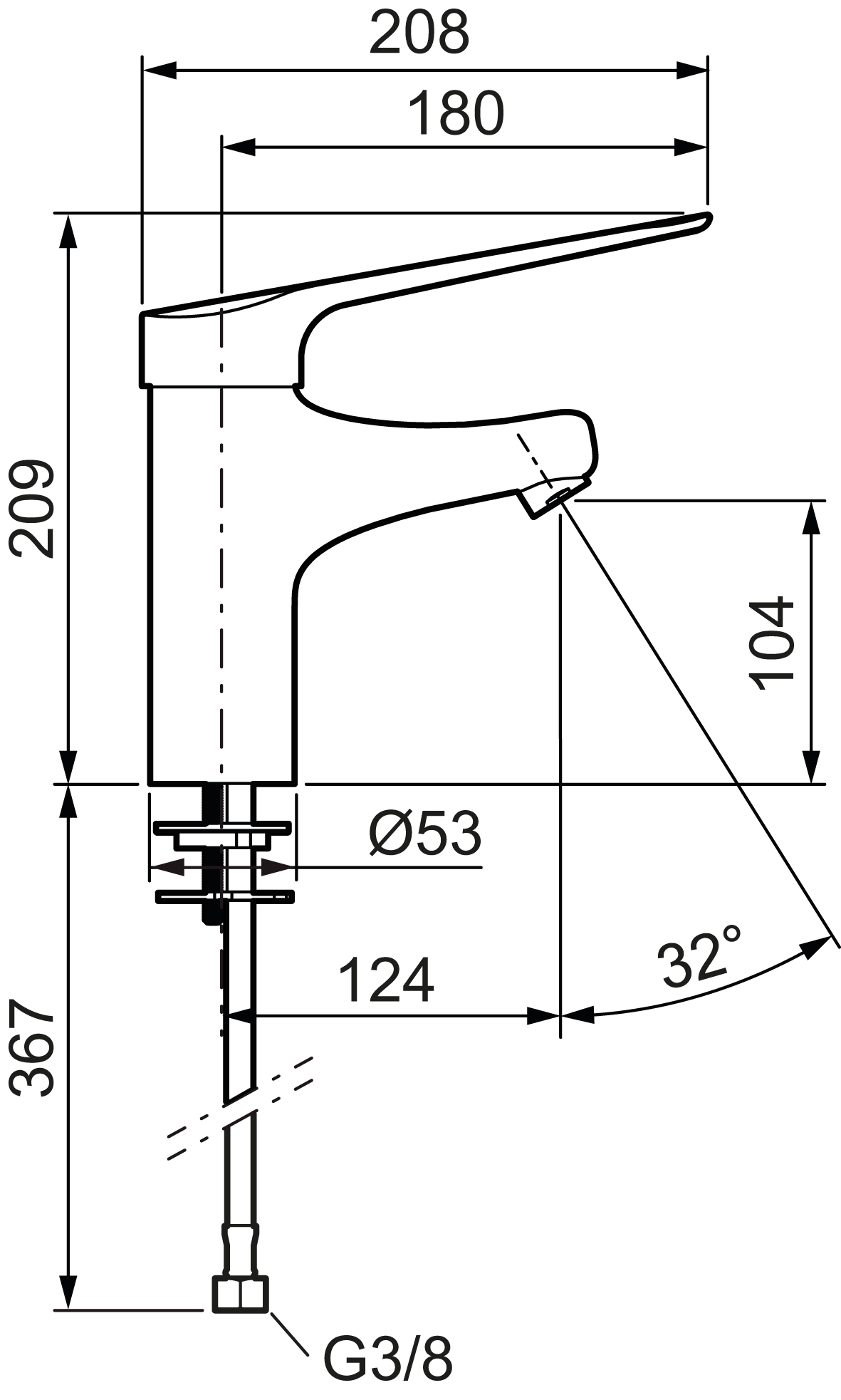 - Lever: 180 mm