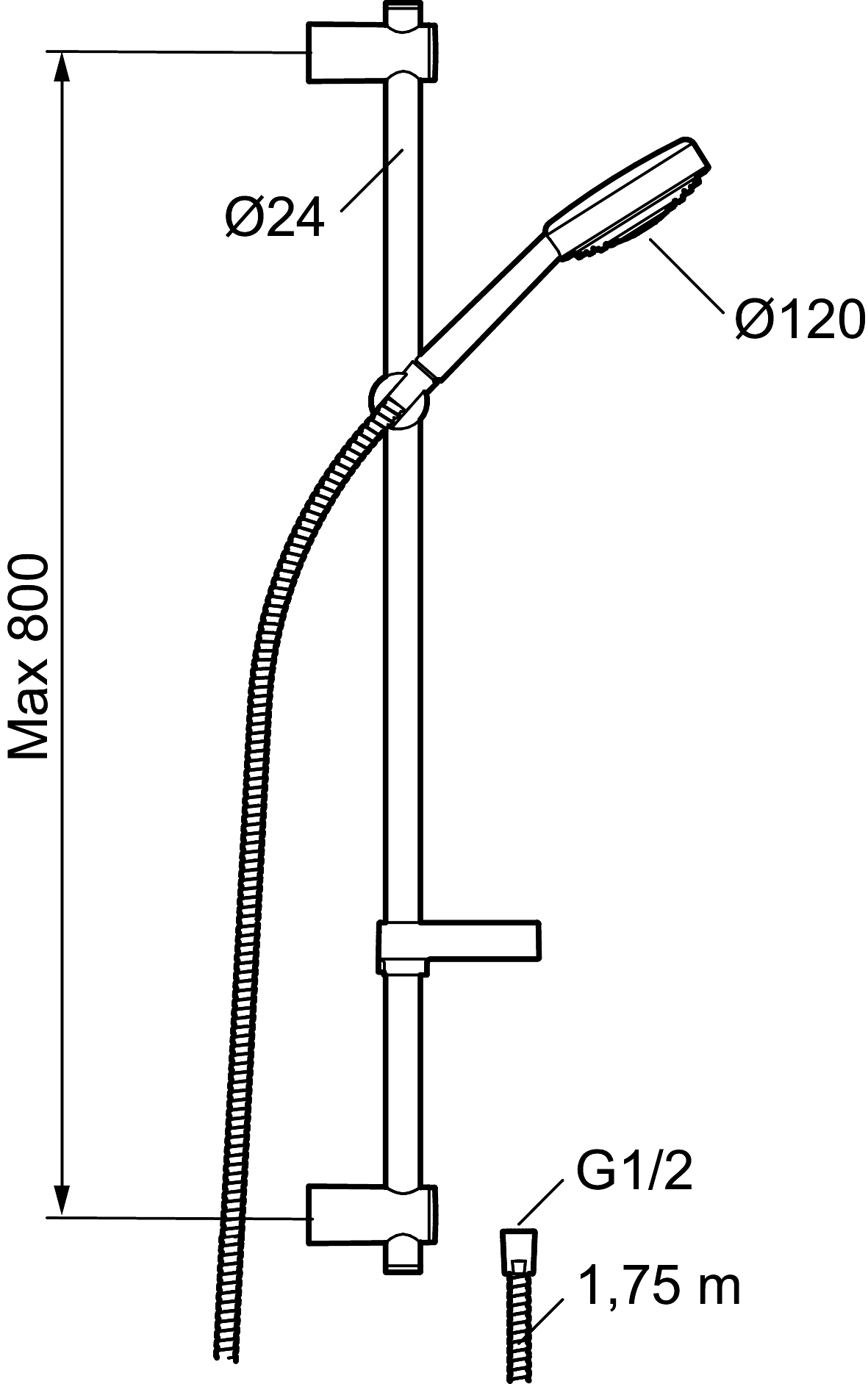 - Douchestang met glijstuk en boven muurbeugel verstelbaar met afdichting