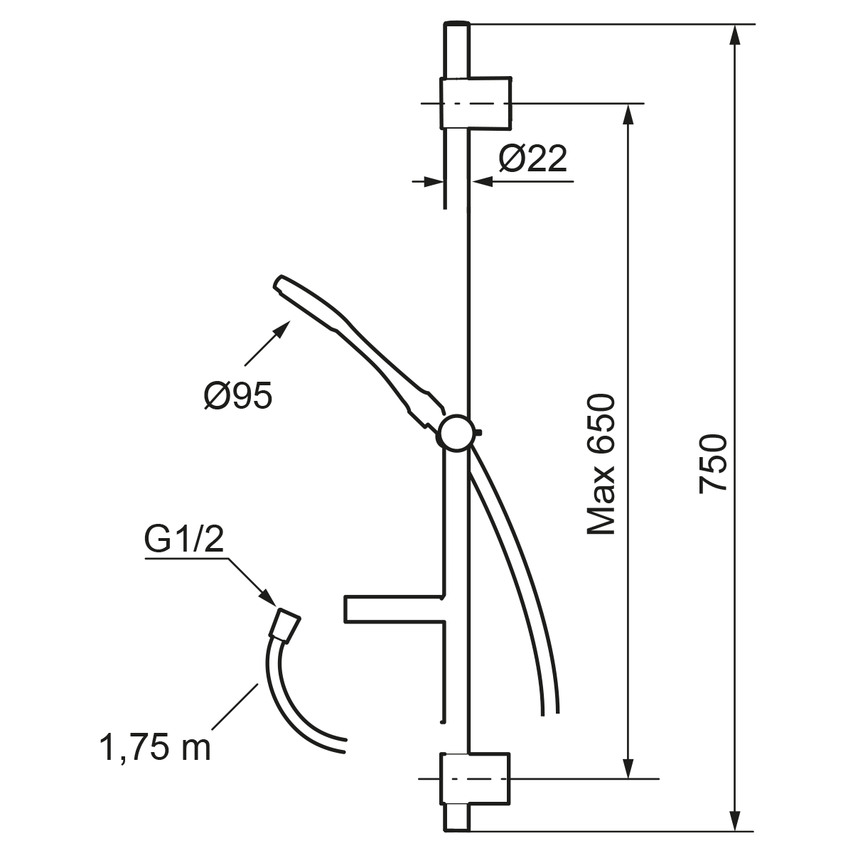 - Duschstång med variabelt c/c-mått för befintliga skruvhål
