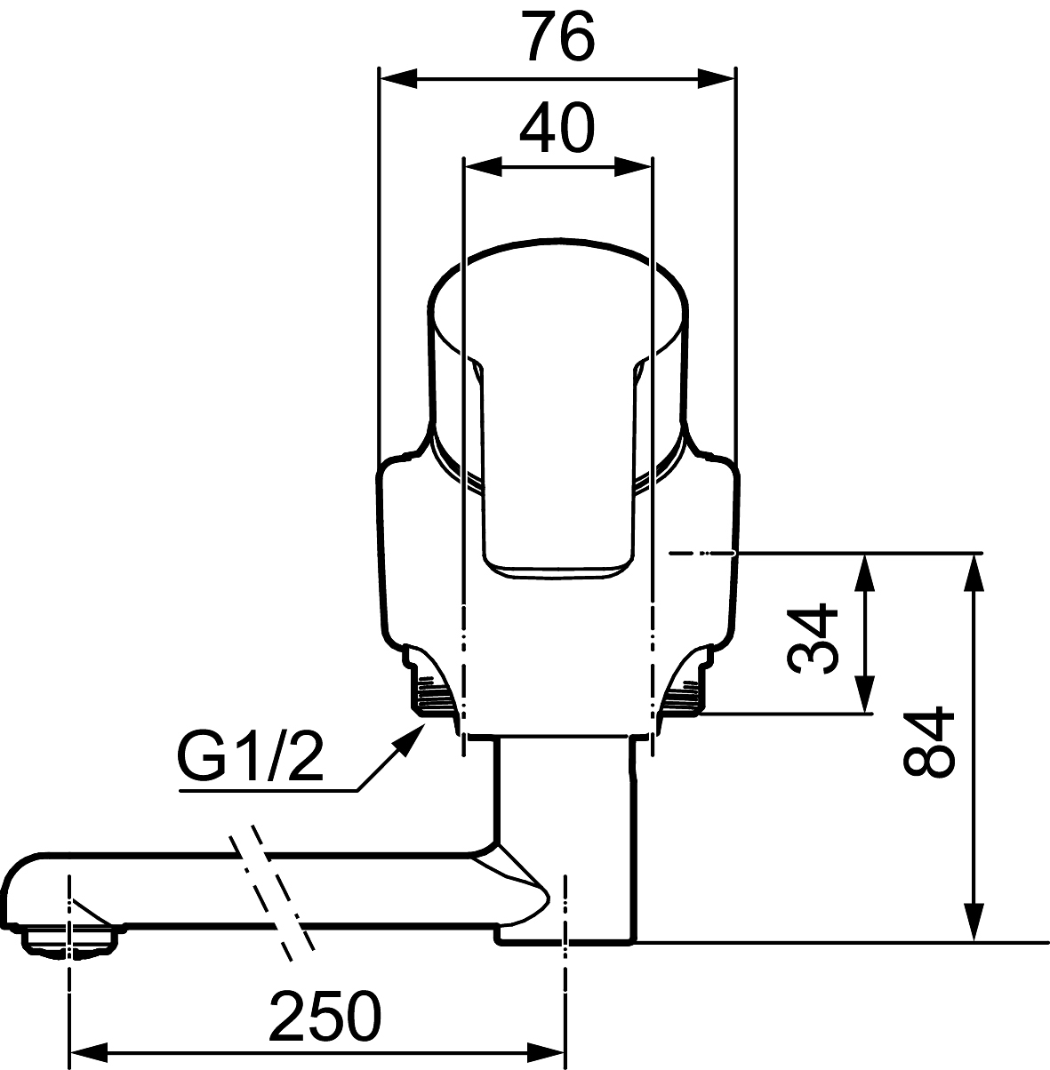Vägghängd ettgreppsblandare 40 c/c, mjukstängande med keramisk tätning.